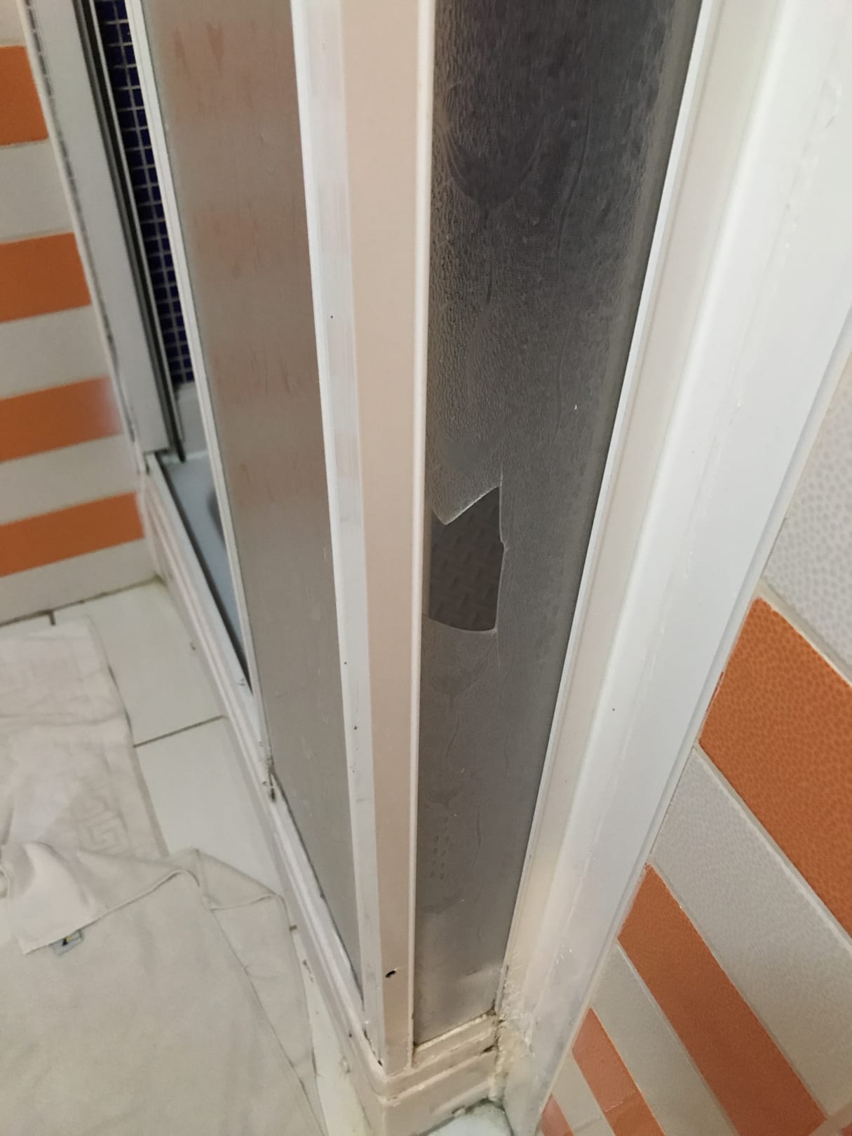Wasser läuft dort aus. Das ganze Bad war überflutet.