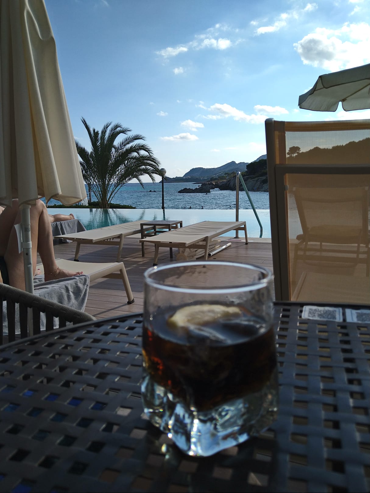 Ausblick von der Bar auf den Pool und das dahinterliegende Meer