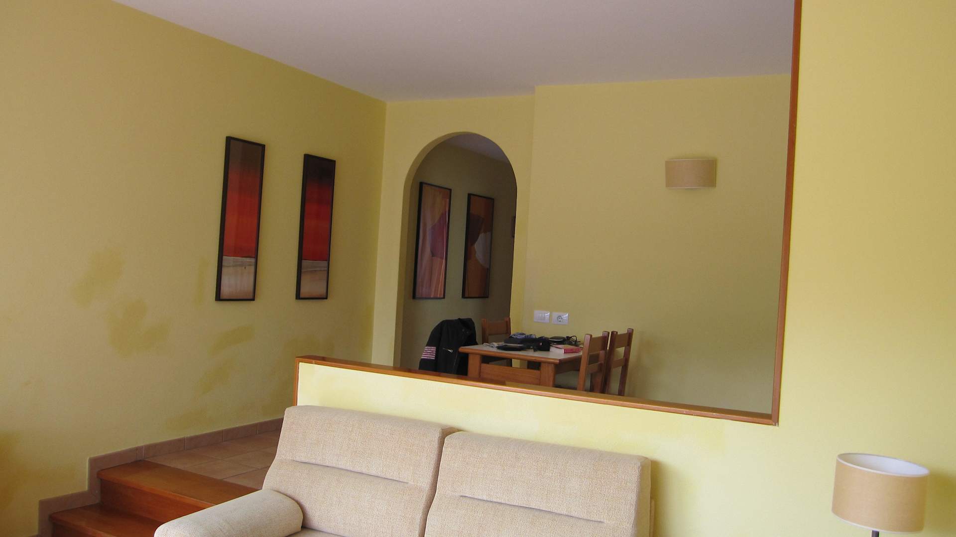 Notrenovierung auf der gelb gefleckten Wand.