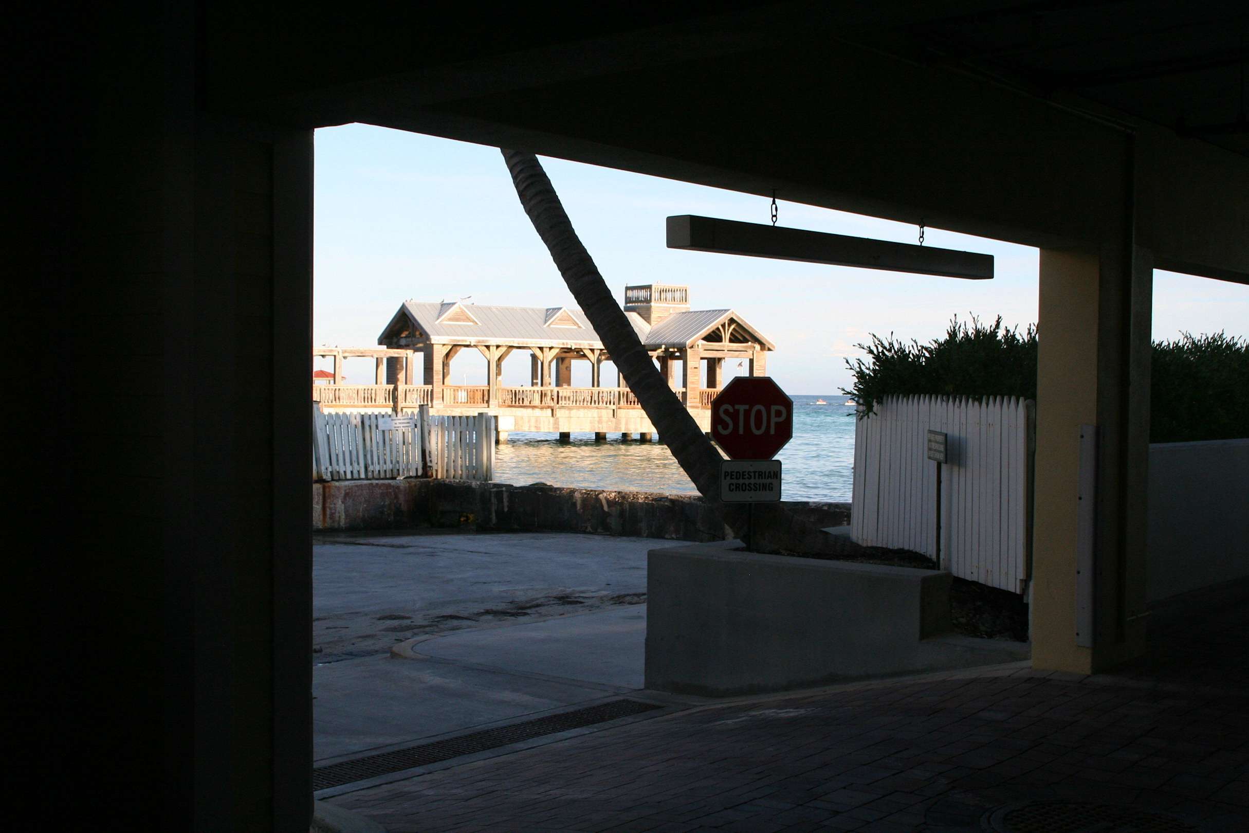 Blick aus der offenen Garage Richtung Strand