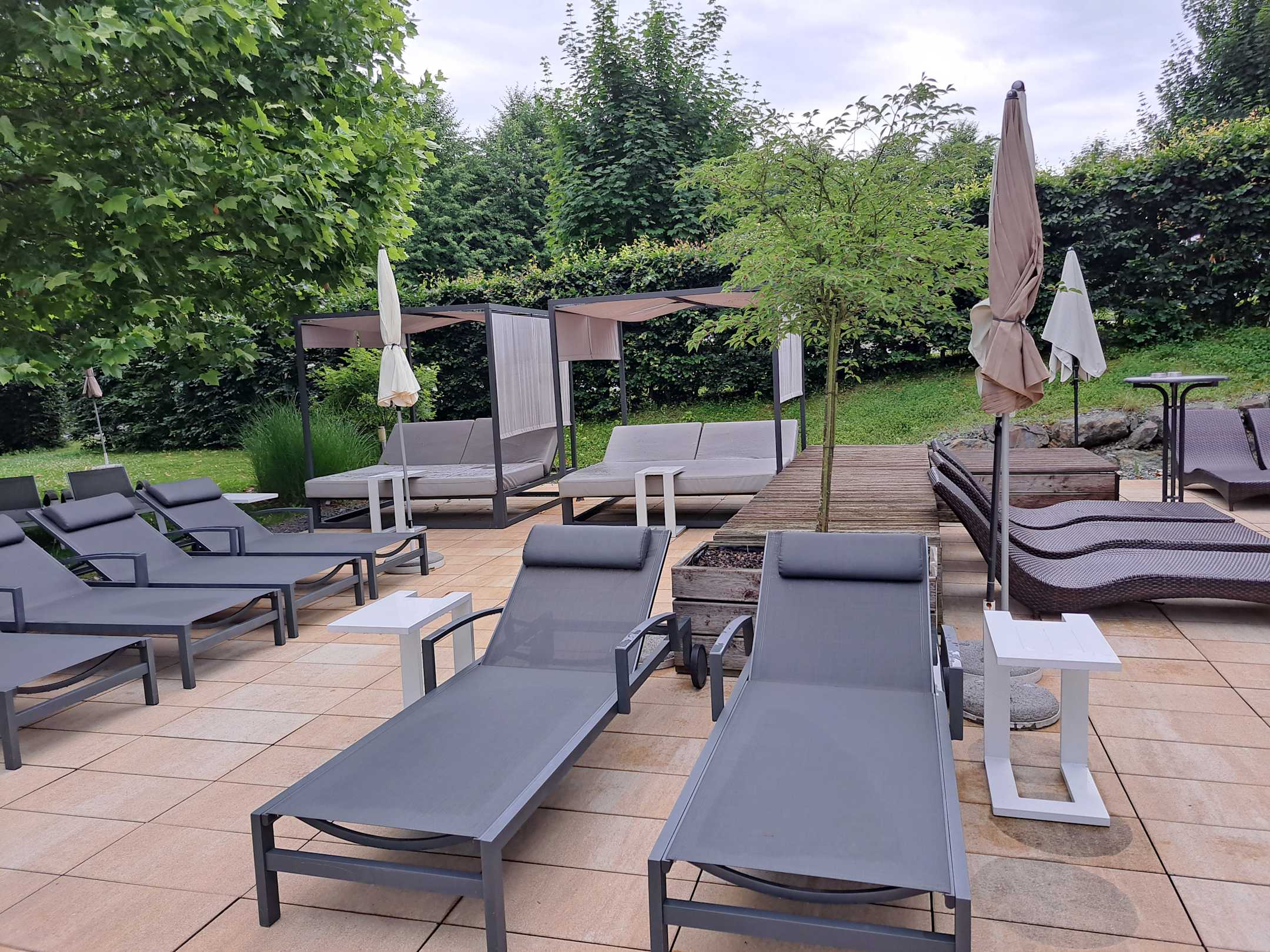 Ein Blick zu den verschiedenen Liegen im Außenbereich