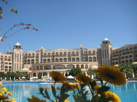 Hotel von Poolanlage gesehen