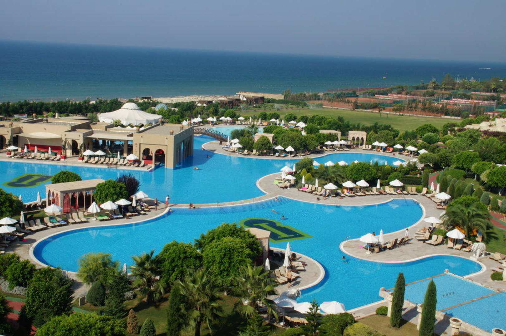 Zimmerausblick vom 4 Stock auf Poollandschaft