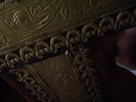 Zimmeran den Stühlen sind diese orientalischen Verzierungen aus Metall sehr spitz und gefährlich. und alle Ecken gucken ab
