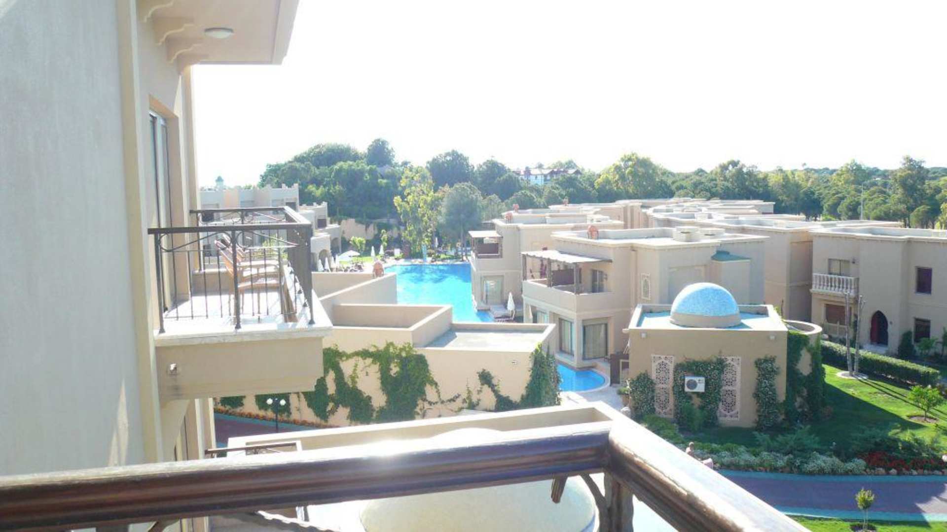 Aussicht vom Balkon auf den Villenpool