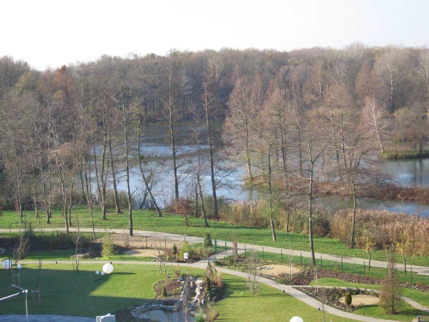 Aussicht vom Zimmerbalkon 5.StockwerkErholungsgebiet 7 Seen direkt neben dem Hotel, vom Zimmer aus gesehen