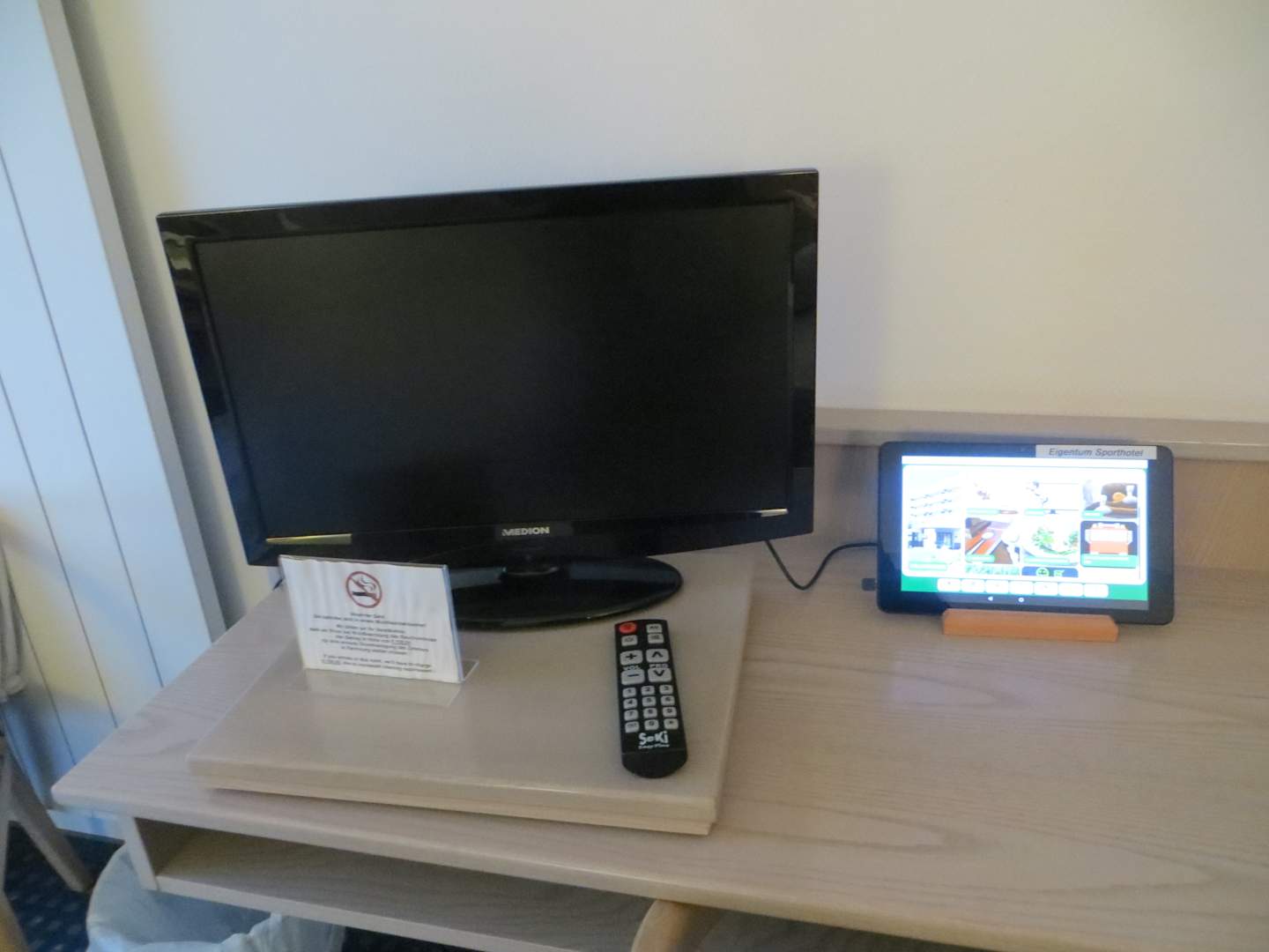 TV und Tablet PC auf dem Zimmer