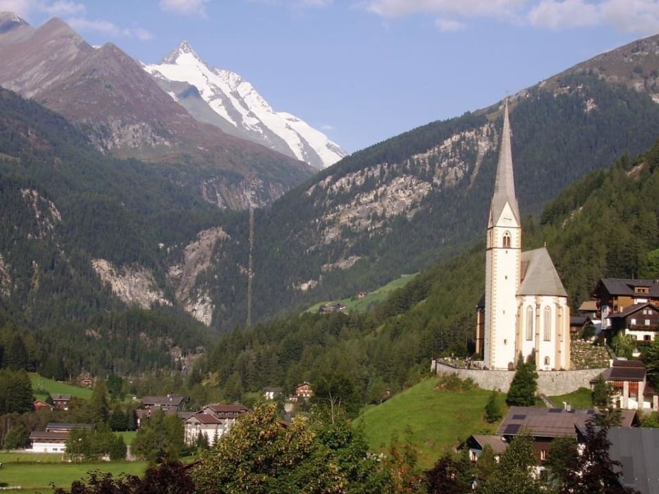 Kirche und Hotel HeiligenblutDie wohl bekannteste Ansicht von Kirche und Großglockner mit Hotel Heiligenblut im Tal.
