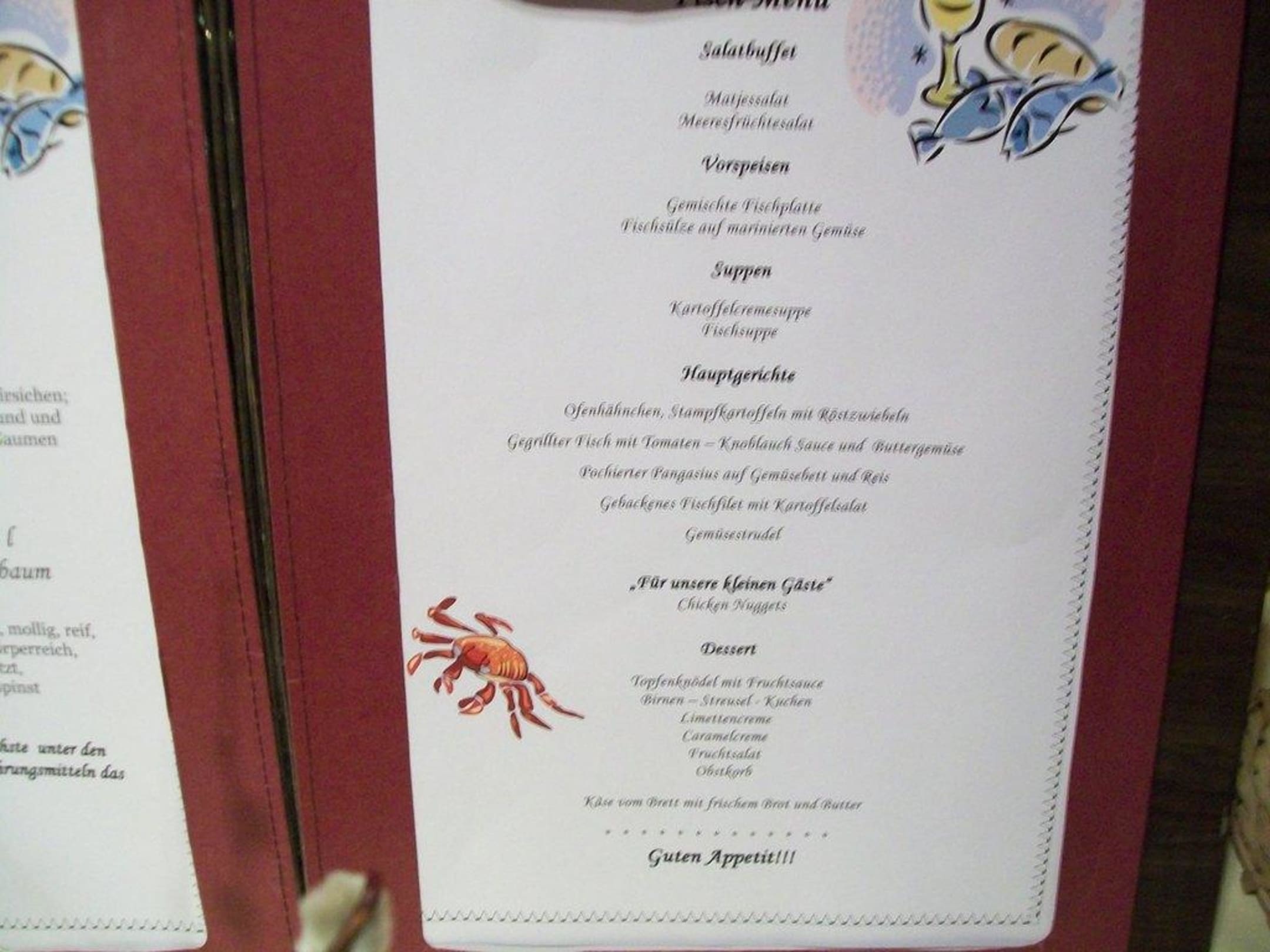 Menükarte eines Abends