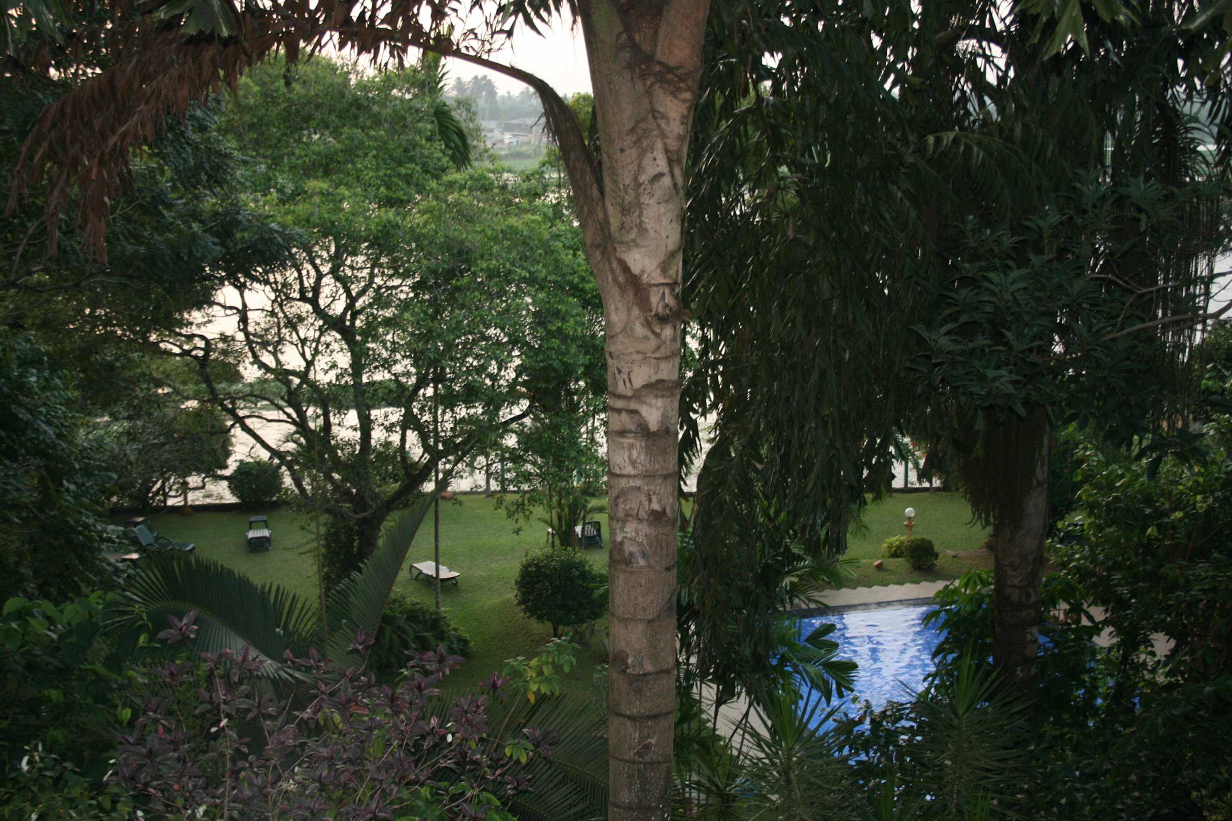 Vom Balkon in den Garten, See im Hintergrund