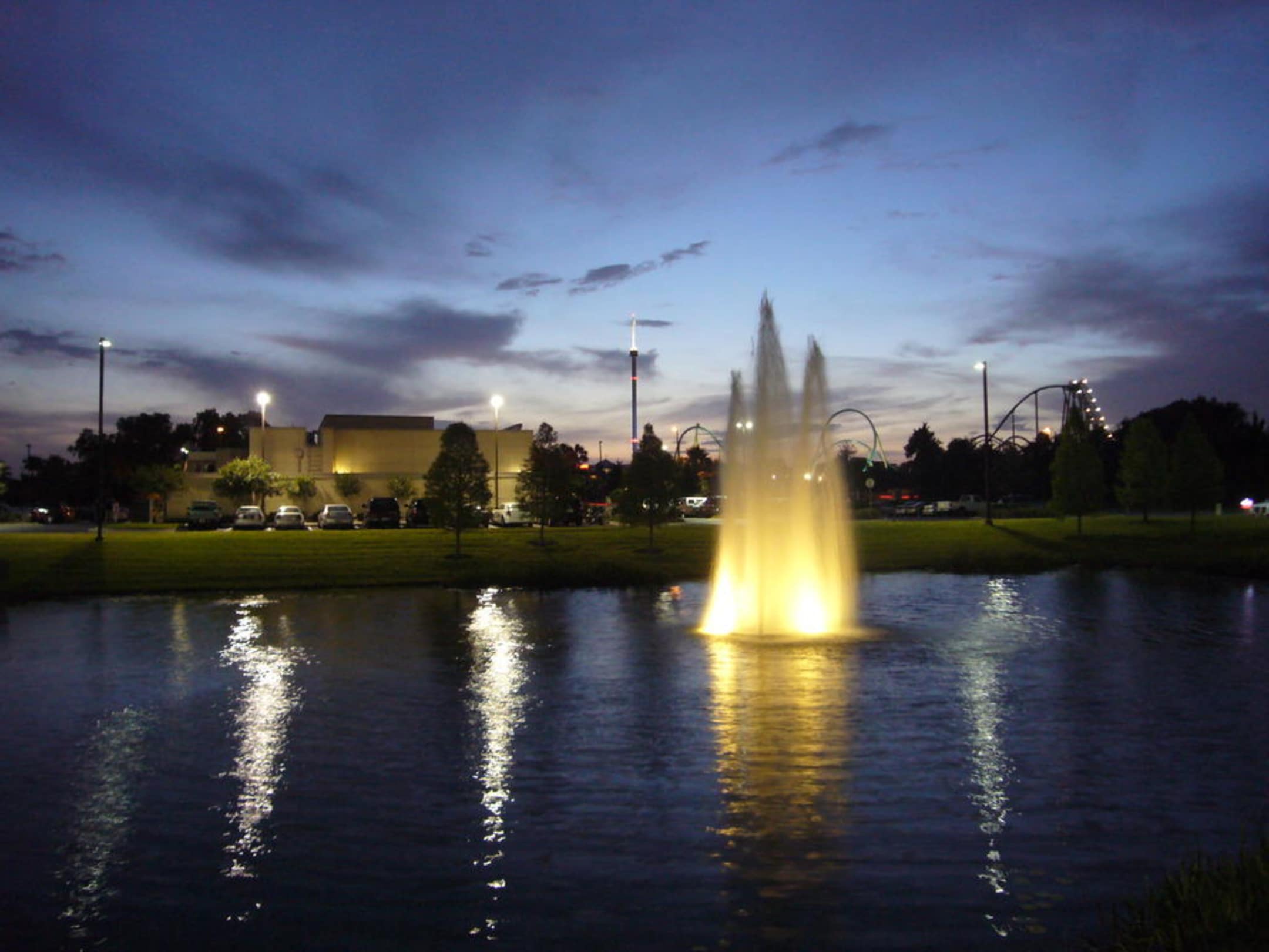 Springbrunnen und Teich vor dem Hotel