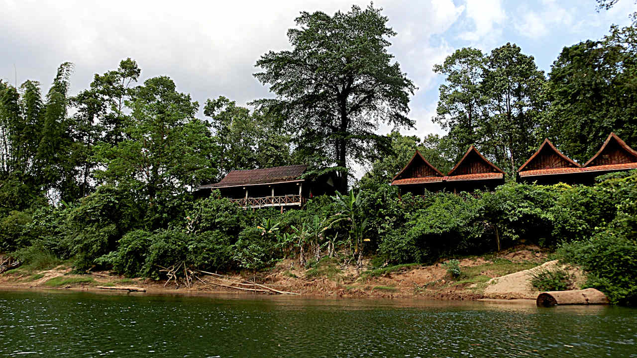 Restaurant ( Mitte ) mit den Deluxe - Zimmer ( rechts )