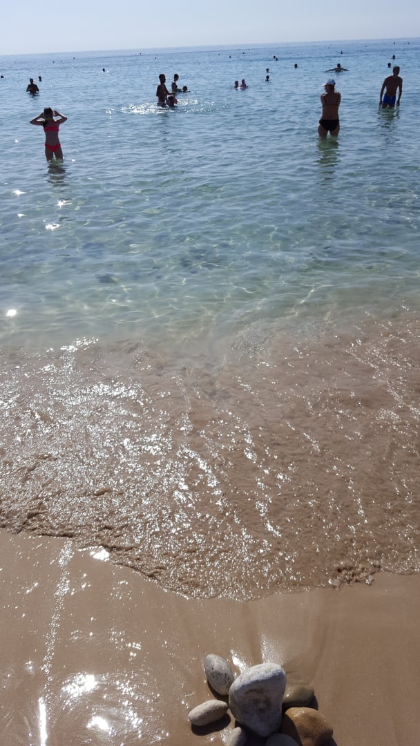 Mitte des Strandes beim Hotel - hier toll zum reingehen, feinsandig, ohne Steine!