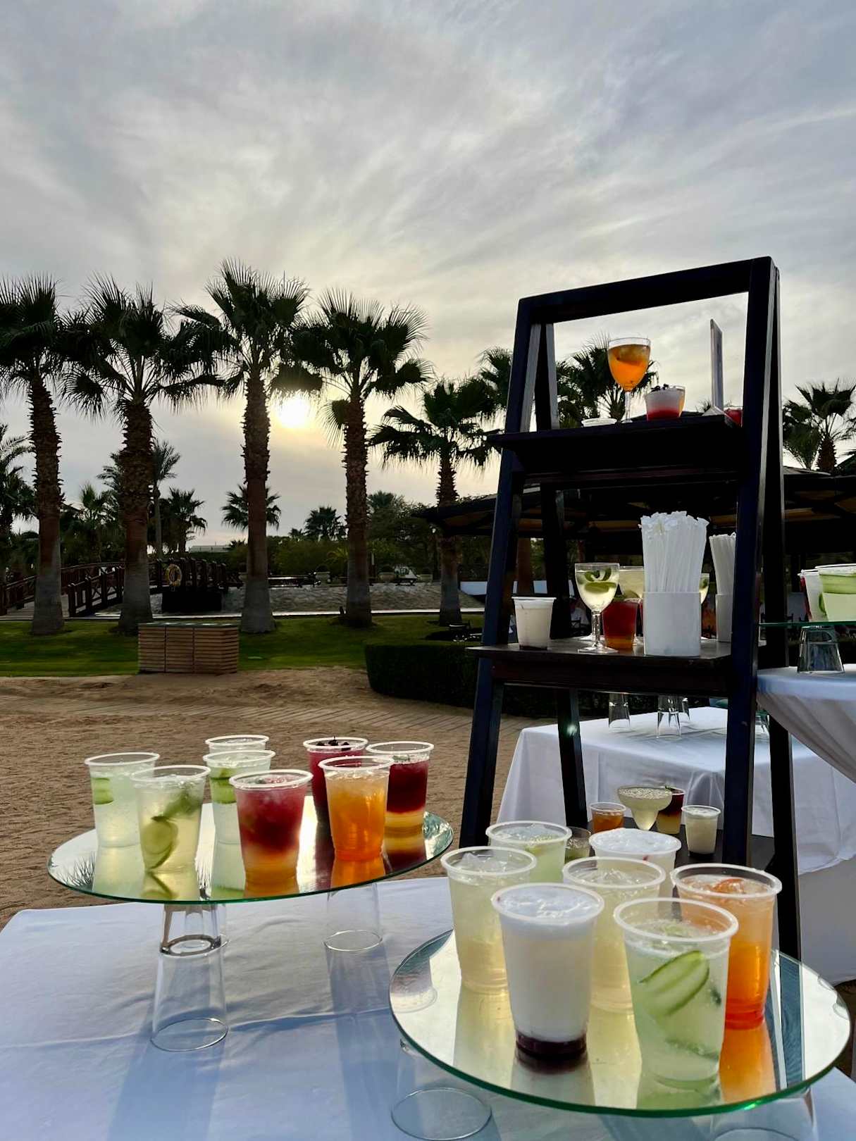 Sun-Downer Party am Strand mit Live-Musik, Cocktails, Tanz mit den Animateuren