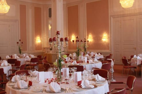 Die wunderschön eingedeckten Tische im Fürstensaal im Steigenberger Hotel Bad Pyrmont.