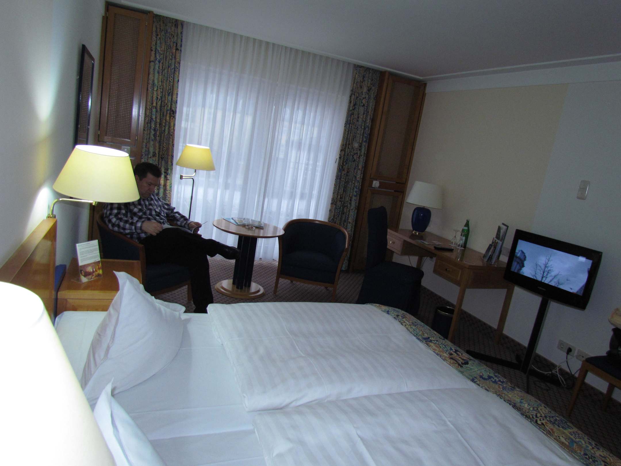 Schlafzimmer mit Leseecke, Schreibtisch, Flachschirm TV und Ausgang auf die große Terrasse