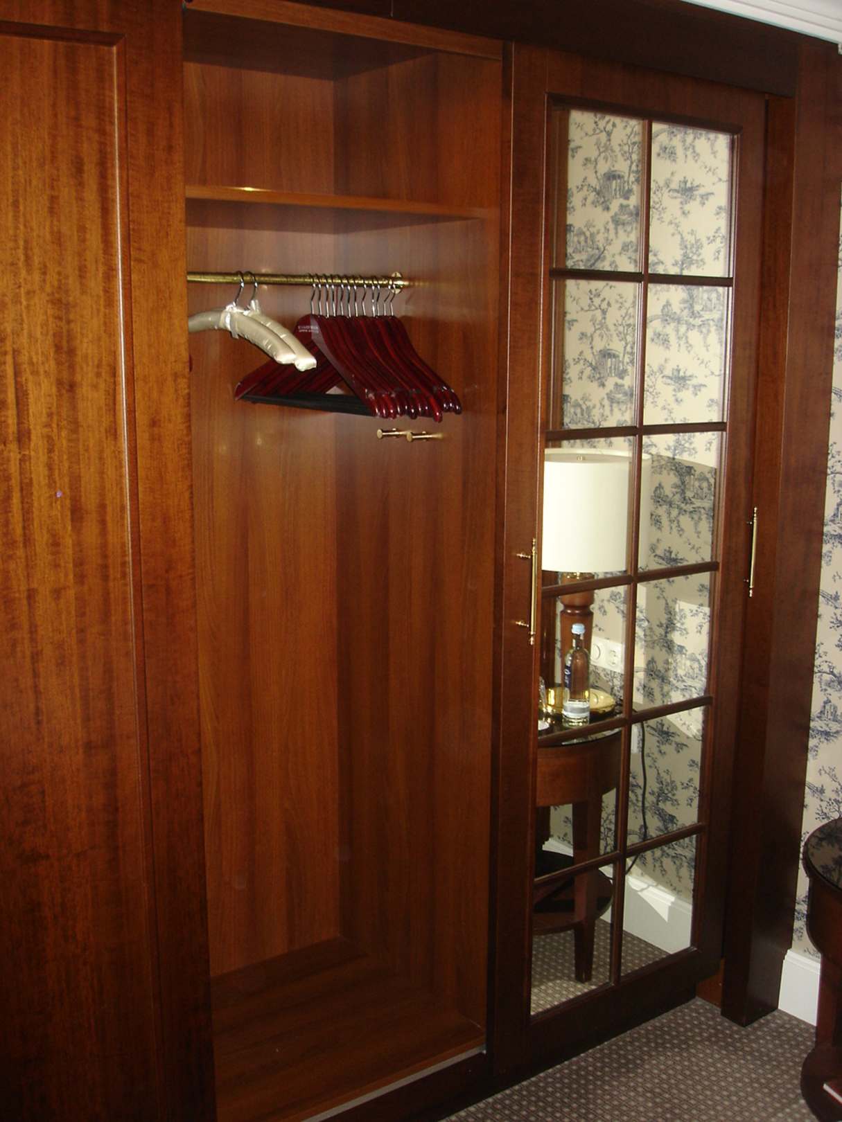 Zahlreiche Kleiderbügel im geräumigen Schrank