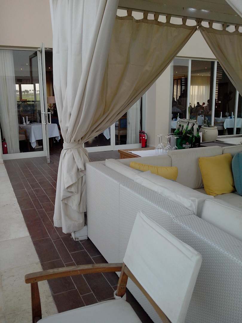 Außensitzmöglichkeit mit Blick auf den Golfplatz