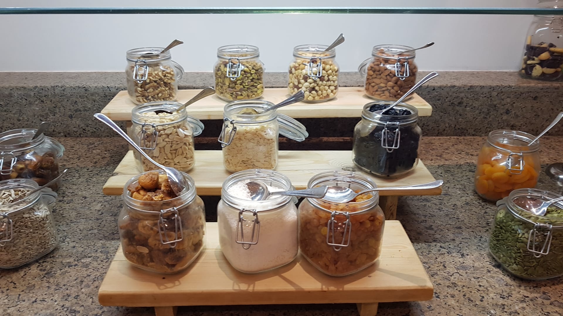 Nussecke und Trockenfrüchte beim Frühstück