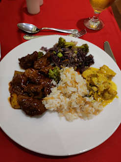 Rindergulasch mit Reis und Hähnchencurry mit Gemüse