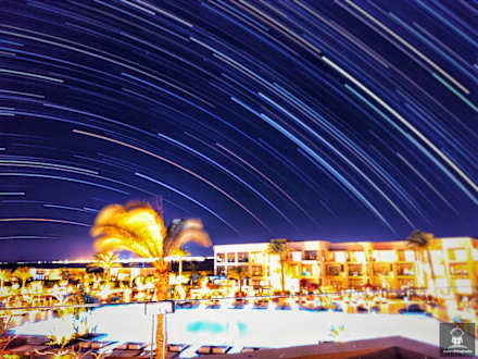 Star-Trail Aufnahme (4 Stunden) vom Zimmer-Balkon