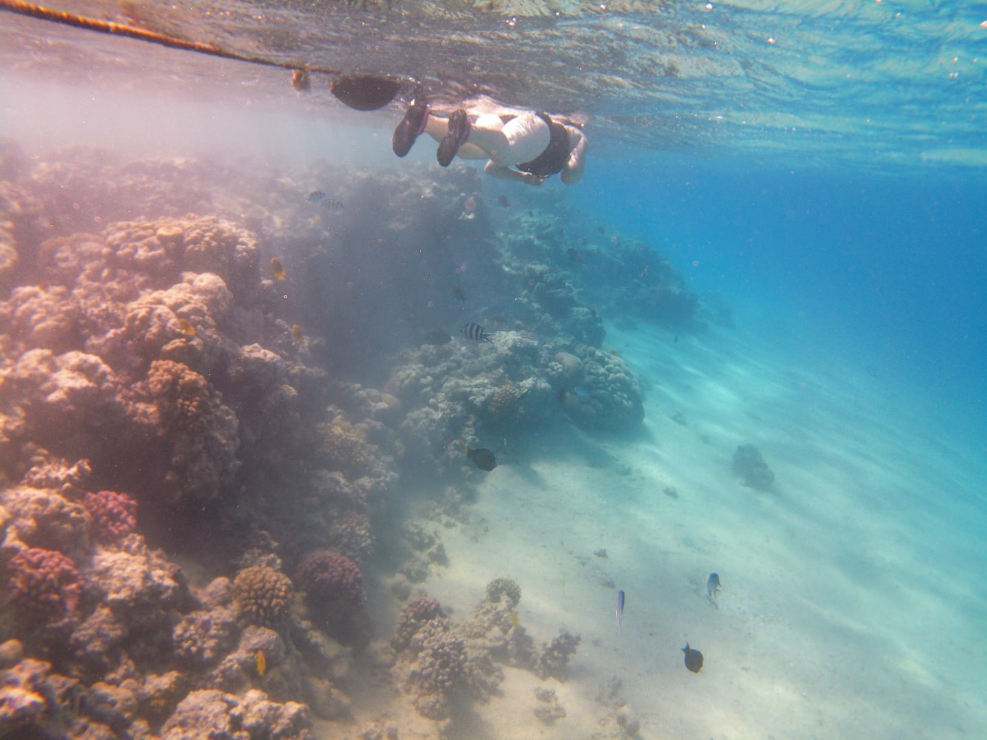 Strandgleich beim Einstieg am Ende des Steges, das Riff fällt hier ca. 5-9 Meter ab, einfach ein toller Blick