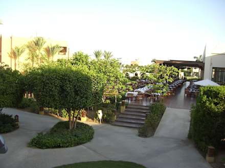Blick auf die Terrasse vom Restaurant