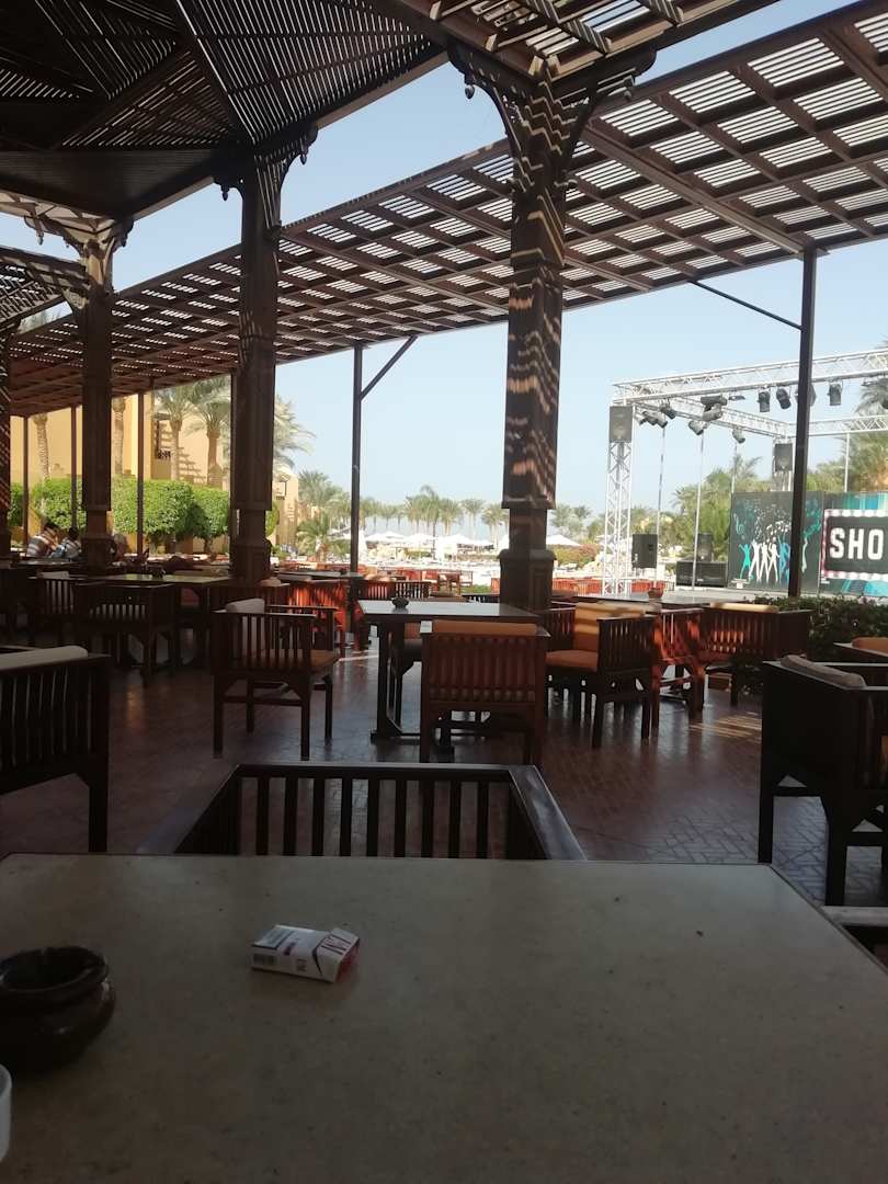 AußenansichtBlick vom Restaurant Richtung Pool. Gleich dahinter ist der schöne Strand mit Steg.