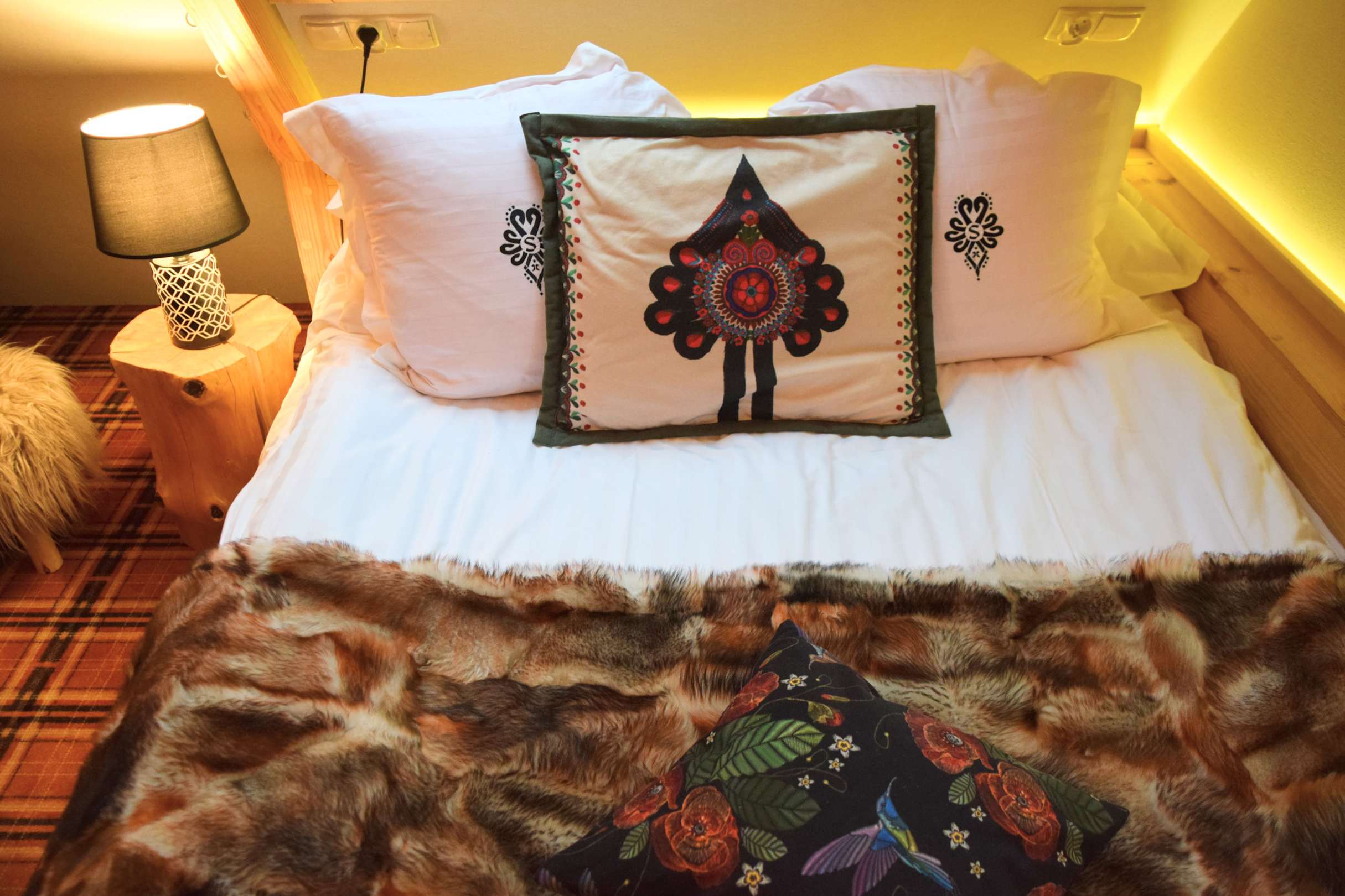 Kleine Doppelbett im gemütlich-warmen Zimmer