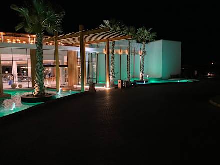 Haupteingang zur Rezeption im Dunkeln