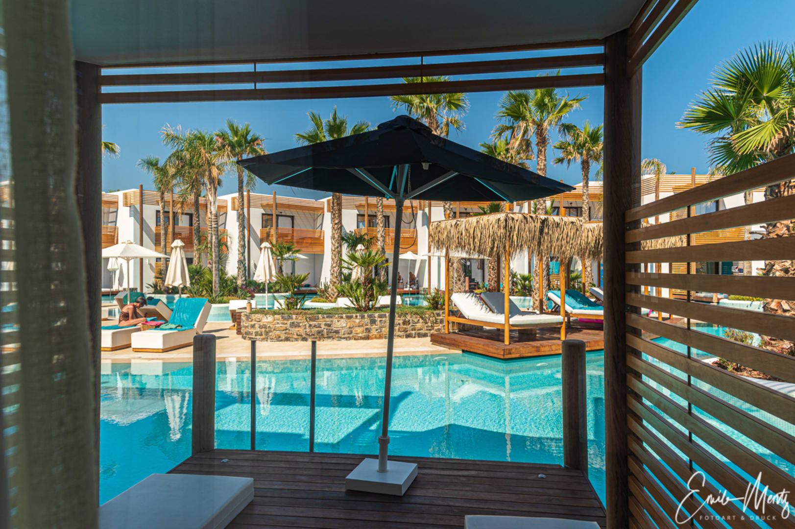 Ausblick vom Zimmer auf den Pool