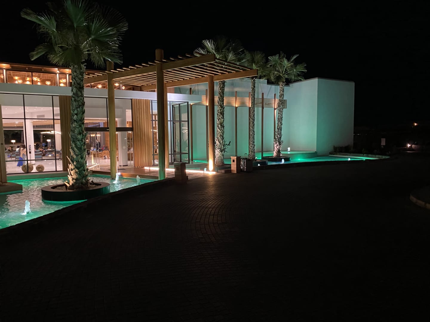 Haupteingang zur Rezeption im Dunkeln