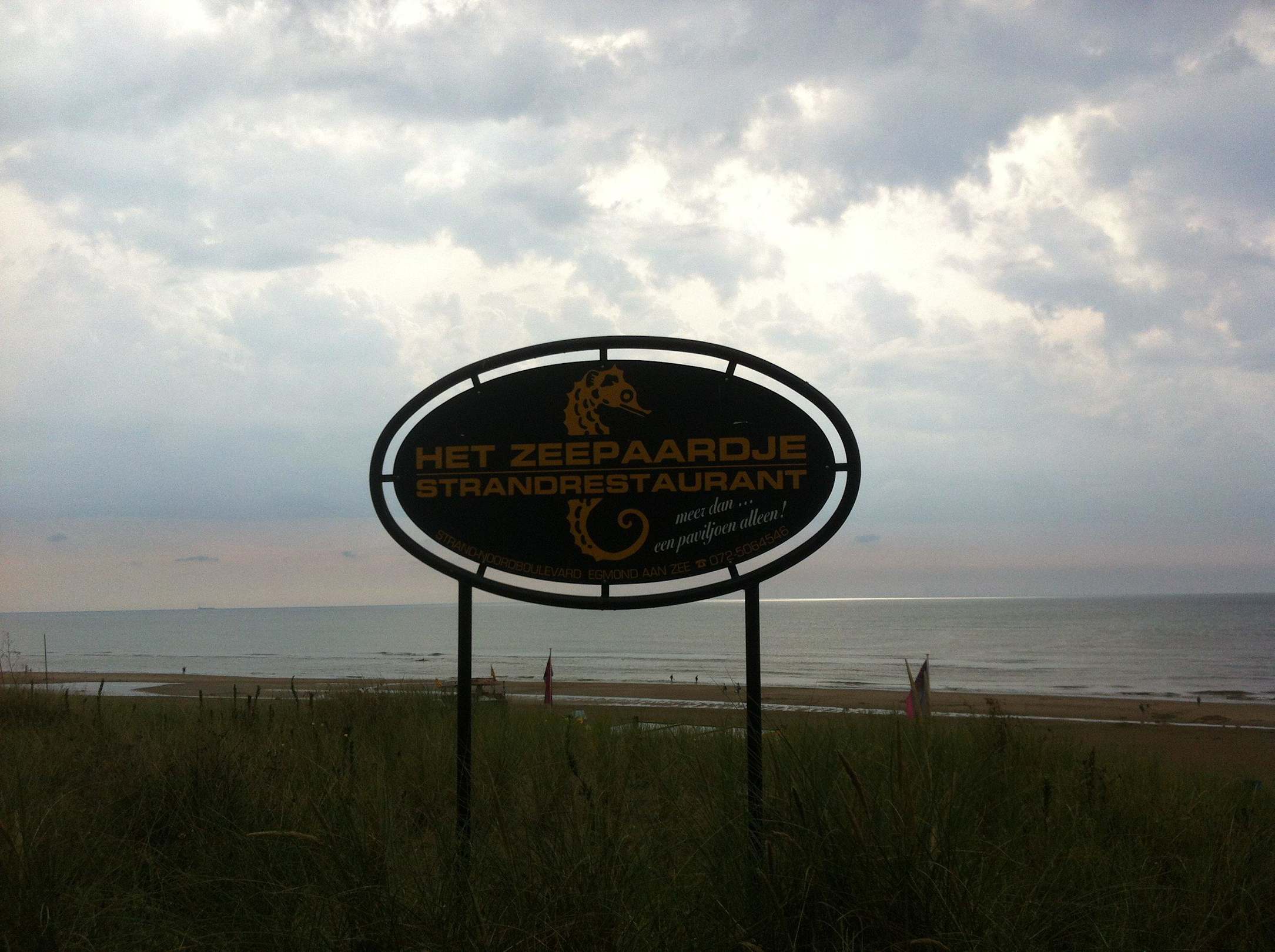 Schild zur Strandbar, gegenüber Hotel