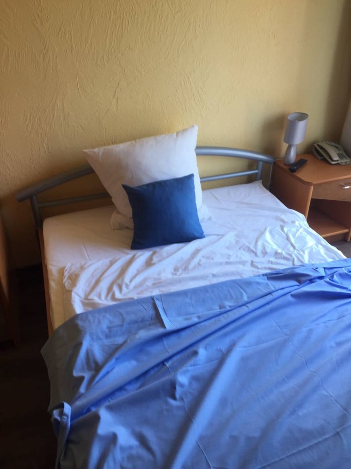 Das Bett im „kleinen Doppelzimmer“ für zwei Erwachsene..