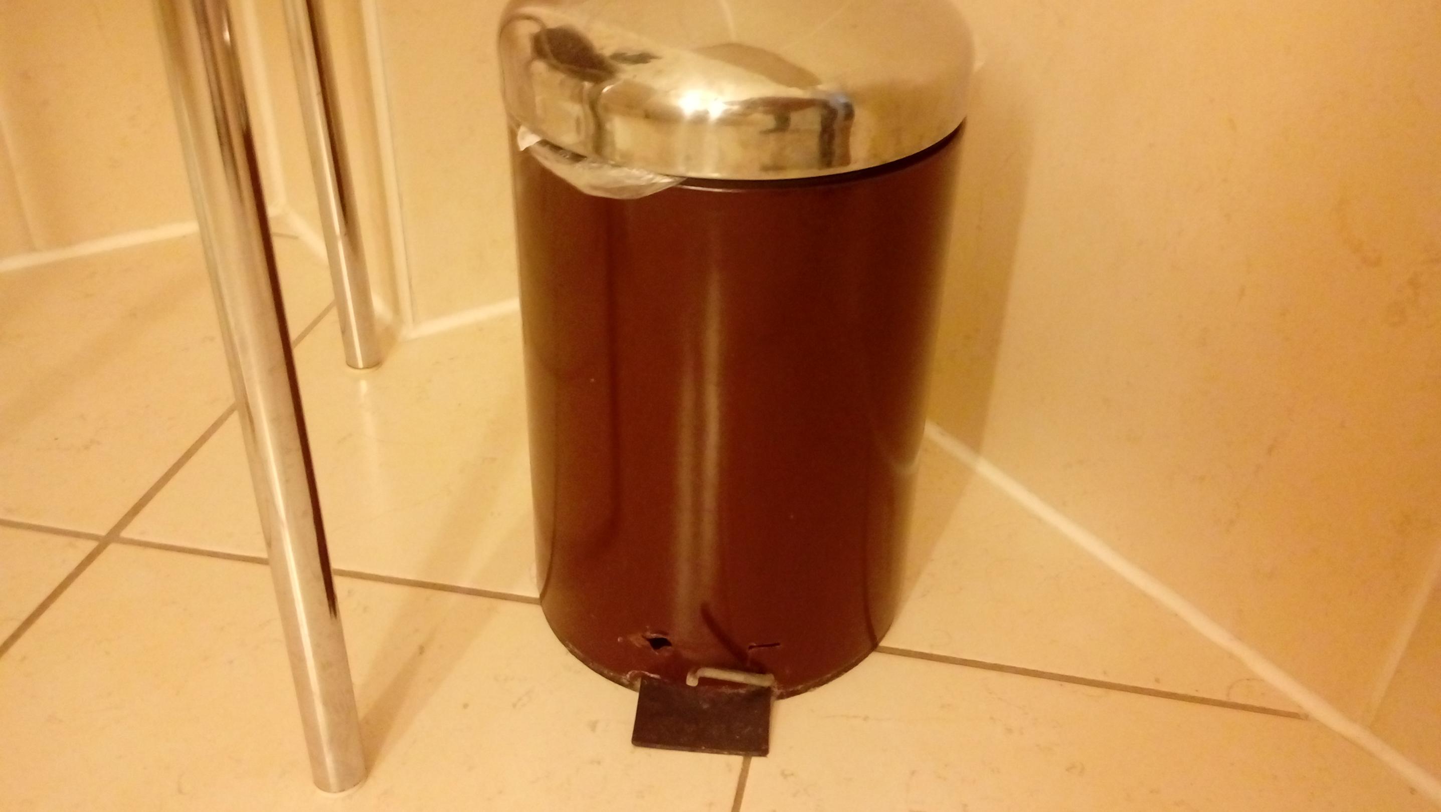 Defekter und dreckiger Mülleimer