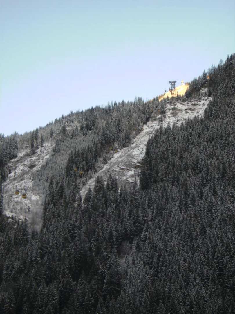 Blick aus dem Zimmer auf den Berg mit Seilbahn