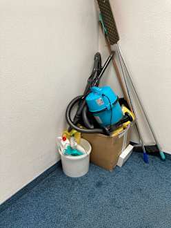 Hotelgänge den ganzen Tag voll von Putzutensilien, Dreckwäsche und Geschirr