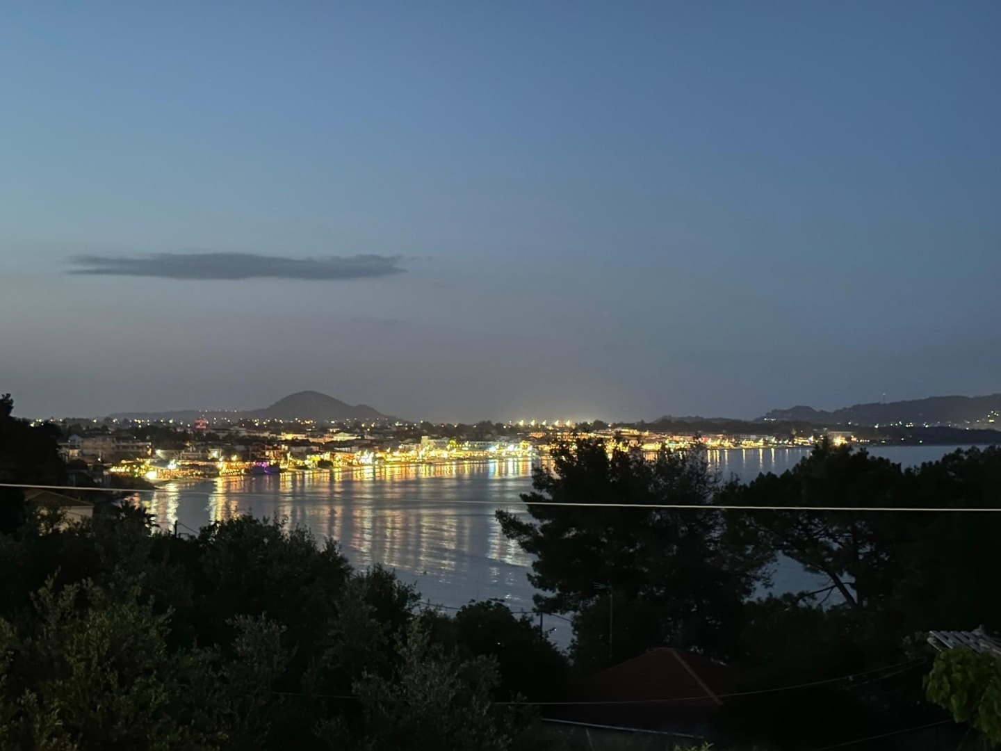 Balkon mit Aussicht auf Laganas bei Nacht