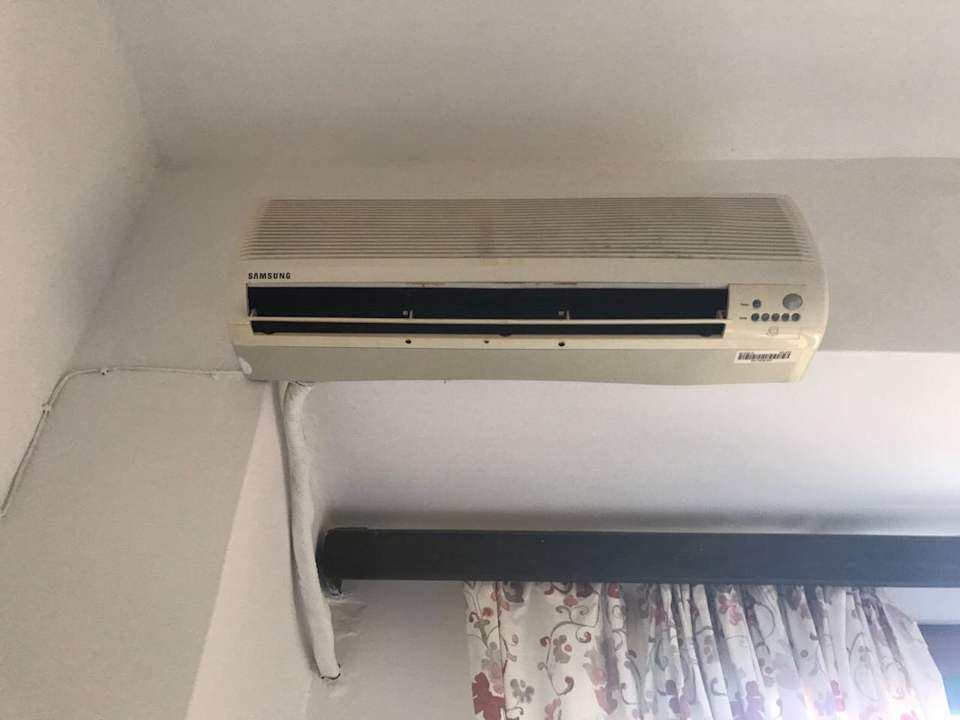 Klimaanlage, hat seine ursprüngliche Funktion aufgegeben und dient nun als Spinnennest