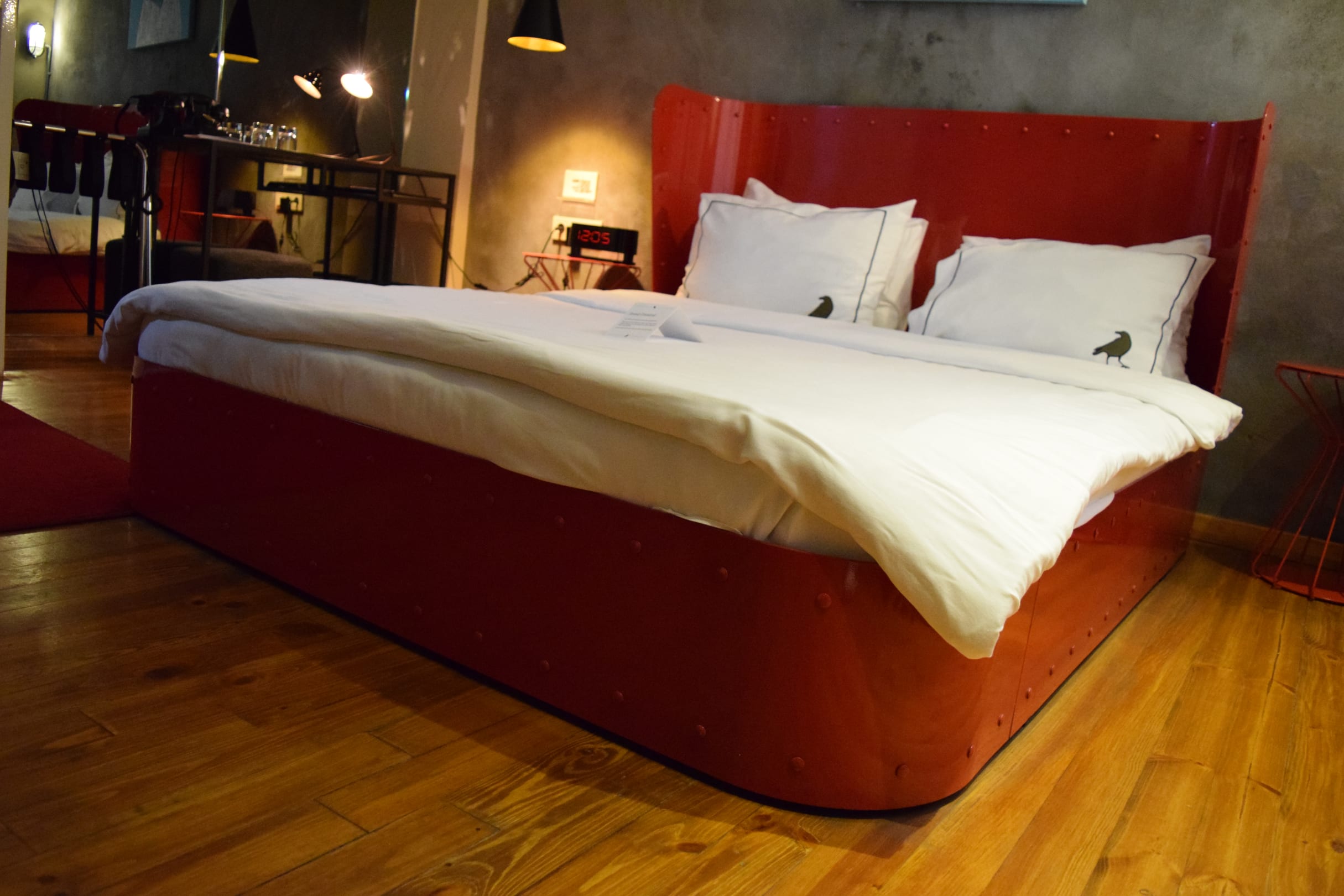 Rotes Doppelbett aus Metall