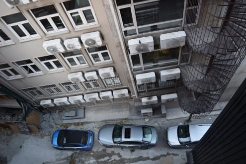 Blick aus dem Zimmer in den Hinterhof