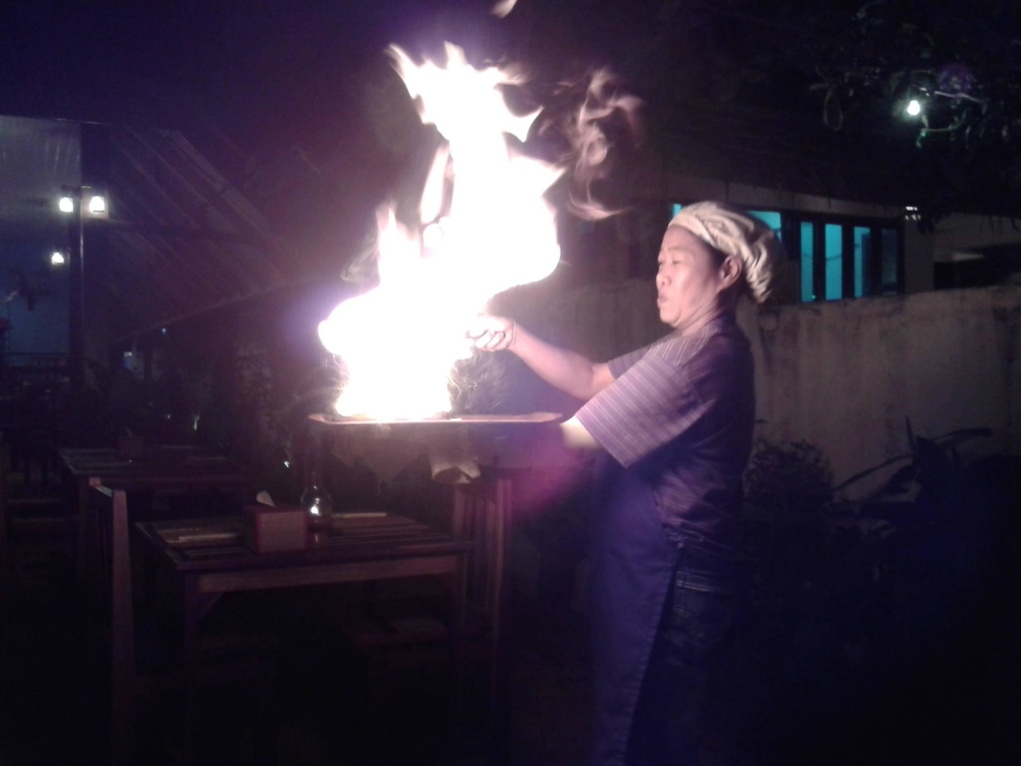 Hot Pan am Tisch angezündet