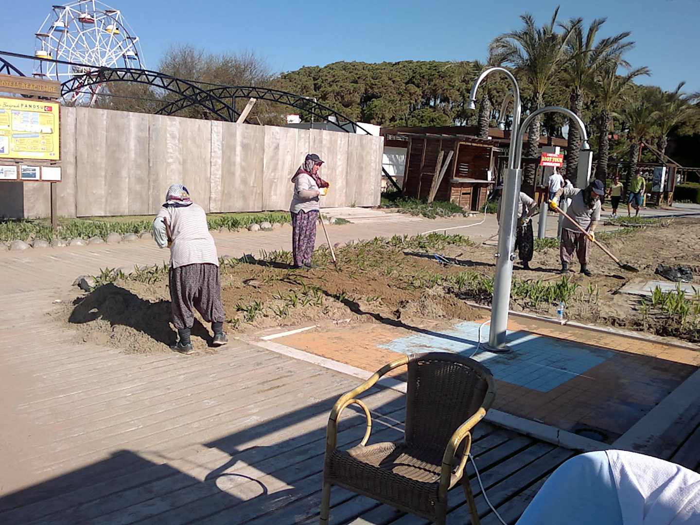 Die Damen machen den Garten toll sauber