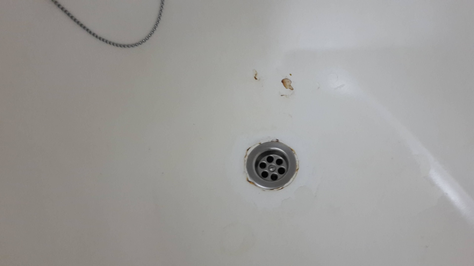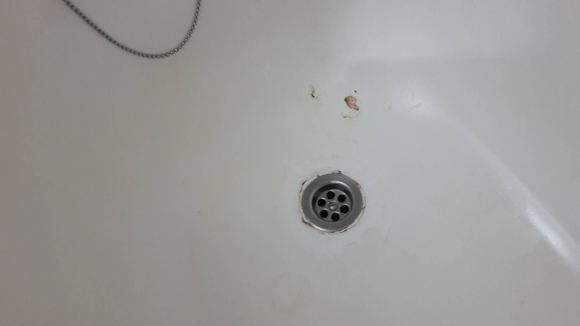 Abgeplatzte Stellen in der Badewanne, rostig