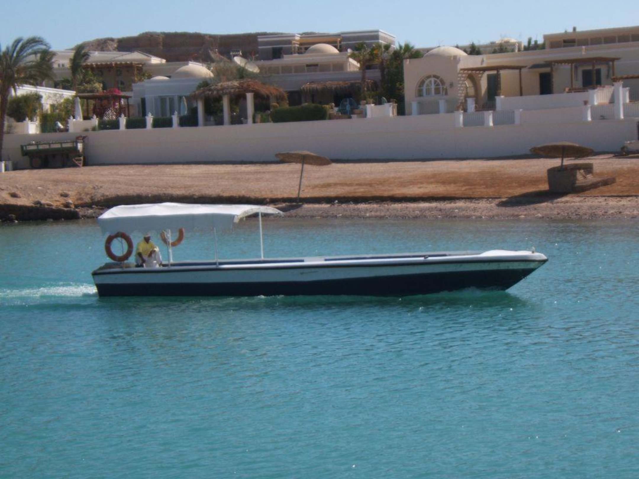 mit diesem Boot fährt man zum Zeytouna Beach