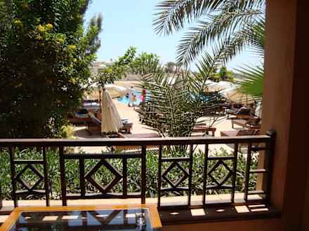 Zimmerausblick auf Pool und Lagune