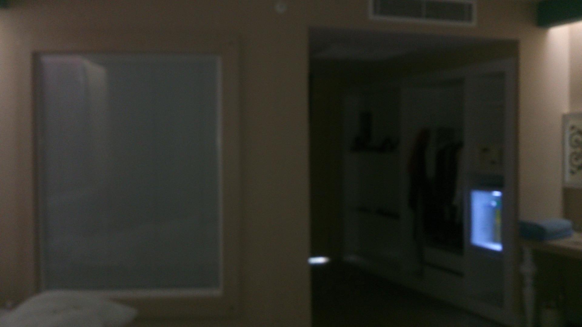 Blick auf Schrank und Bad mit Fenster!