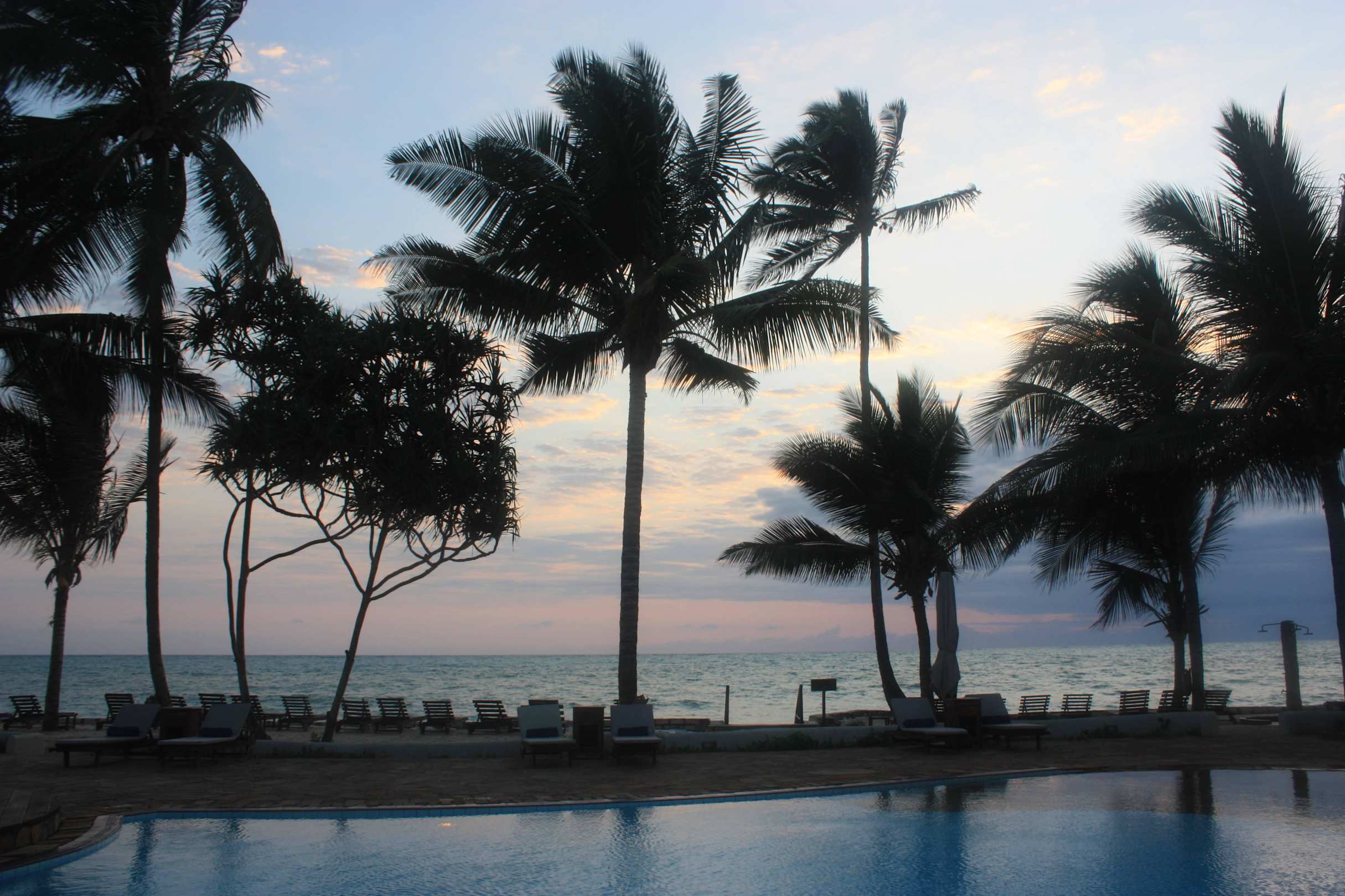 Sonnenaufgang morgens am Pool