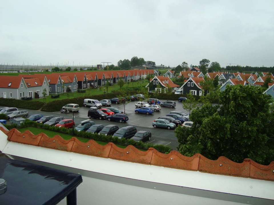 Blick vom Balkon auf die neuen Ferienhäuser