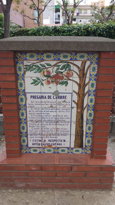Eine Tafel im Garten gegenüber von das Hotel